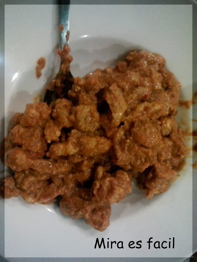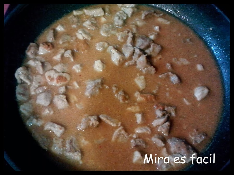 Añadimos el sobre de condimento y el agua. (Según la recomendación del sobre). Dejamos reducir.