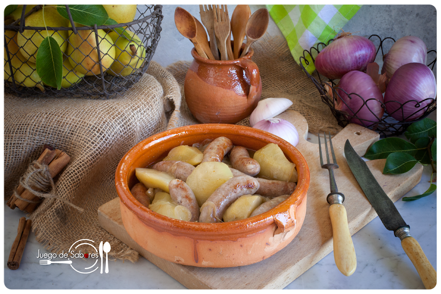 Este plato es un clásico en casa. Lo hemos hecho infinidad de veces y siempre ha tenido éxito. Es tan fácil de elaborar y tan barato que, erróneamente, no lo publicábamos en el blog porque pensábamos que en los blogs hay que hacer cosas difíciles, vistosas, espectaculares y si para mayor lucidez había que hacer el triple salto mortal pues no quedaba otra que hacerlo. No, amigos. No todo el mundo está dispuesto a hacer piruetas en la cocina. La sencillez también debe valorarse. Veamos. A partir de tres ingredientes básicos como son unas peras, unas cebollas y unas butifarras frescas, convenientemente acompañadas de un chorrito de vino dulce tipo moscatel y otro de coñac, elaboraréis un plato que sería para chuparse los dedos si no fuera que hay que comerlo con cuchillo y tenedor. Relamerse sí está permitido.
