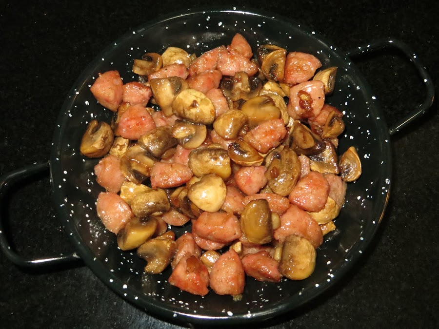Echa el vino en la sartén y desglasa. A continuación, saca la mezcla y reserva. En la misma sartén rehoga los champiñones y cuando estén casi cocinados añade la mezcla anterior. Decora con perejil y ya está listo para servir.