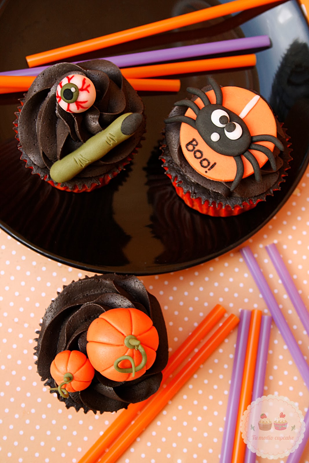 Para esta arañita cogimos la idea de Victorious Cupcakes!!