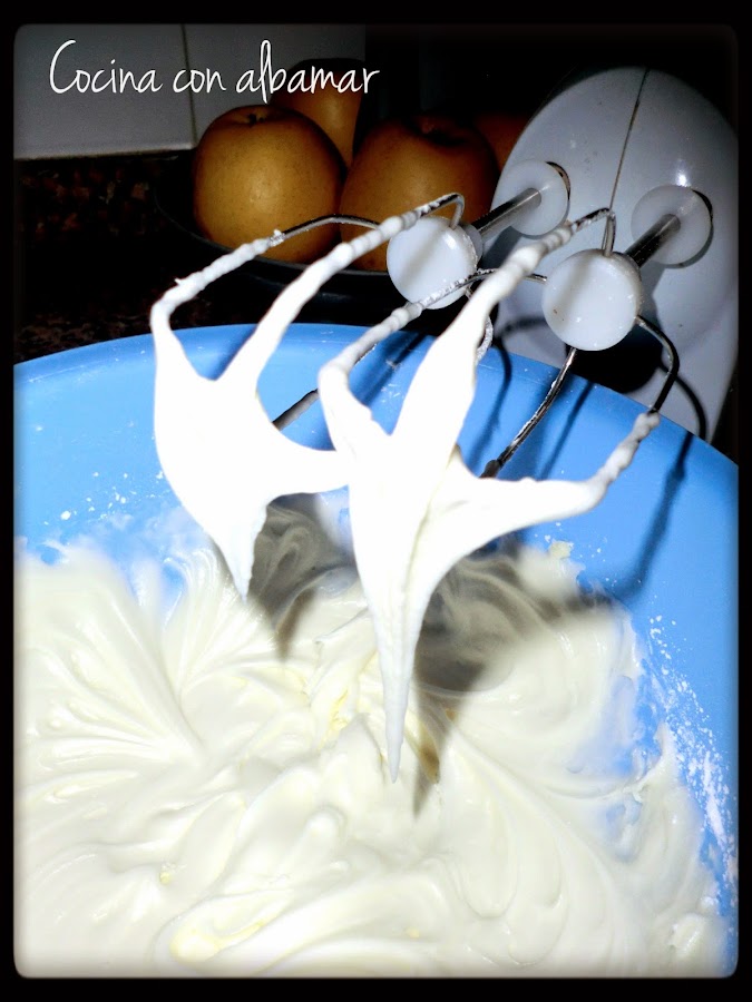 Batir la mantequilla durante un par de minutos, añadir el aroma e ir agregando poco a poco el azúcar glass y batir un par de minutos, añadir la leche y batir enérgicamente unos 3-4 min.