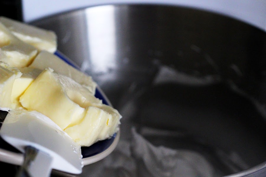 Añadimos a la batidora la mantequilla a temperatura ambiente i seguimos batiendo hasta obtener una crema suave y realmente sedosa.