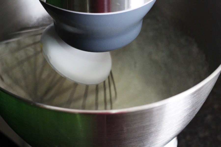 Una vez tengamos la temperatura deseada llevaremos las claras a la batidora y empezaremos a batir a velocidad media hasta que formemos un merengue y este frío.