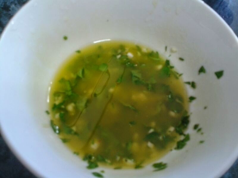 Preparamos una vinagreta con los dientes de ajo y el perejil muy picados junto con el zumo de medio limón y un poco de aceite de oliva virgen extra.