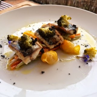 Above the mackerel we put a piece of broccoli, and on the sides the cherry tomatoes