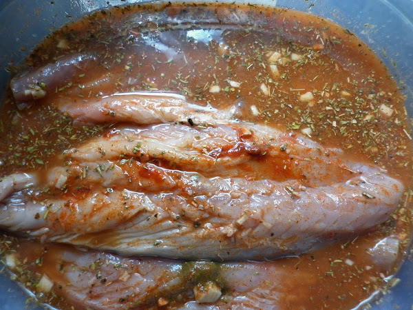 Introducimos los filetes, bien enteros o cortados a trocitos. Lo dejamos macerar como mínimo 24 horas.