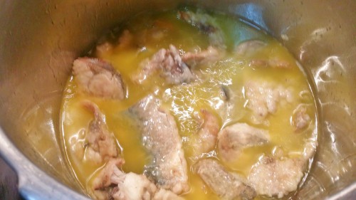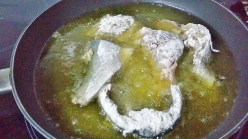 · Disponer una sarten con aceite y calentarlo. Freir las caballas.