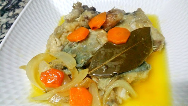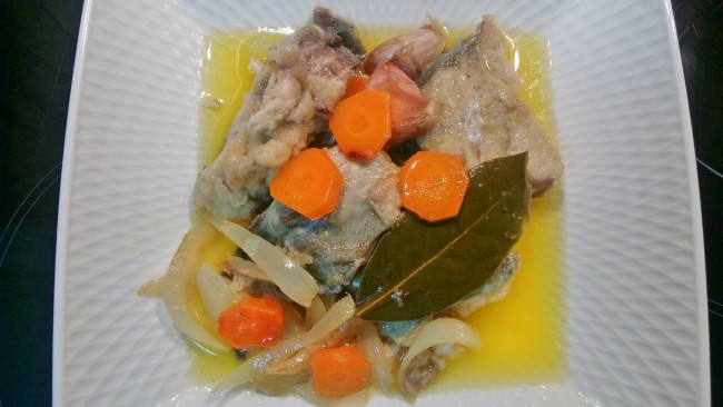 · Introducimos la caballa en el escabeche. Dejamos cocer unos minutos, un máximo de 5 minutos.