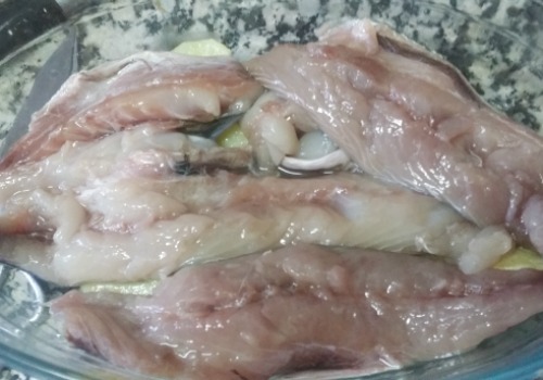 - Poner encima las caballas bien limpias, saladas y sin espinas.