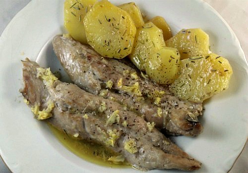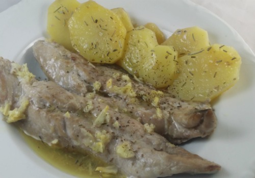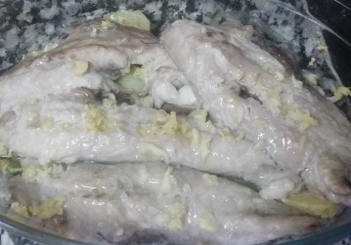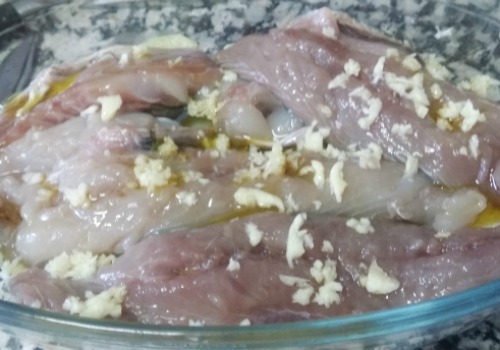 - Picar los ajos muy pequeños y ponerlos por encima de las caballas.