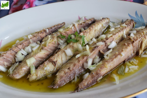 Transcurrido el tiempo, saca a una fuente y espera a que se enfríen; saca los lomos, quita todas las espinas posibles y guarda en un recipiente hermético cubiertas con el aceite.
