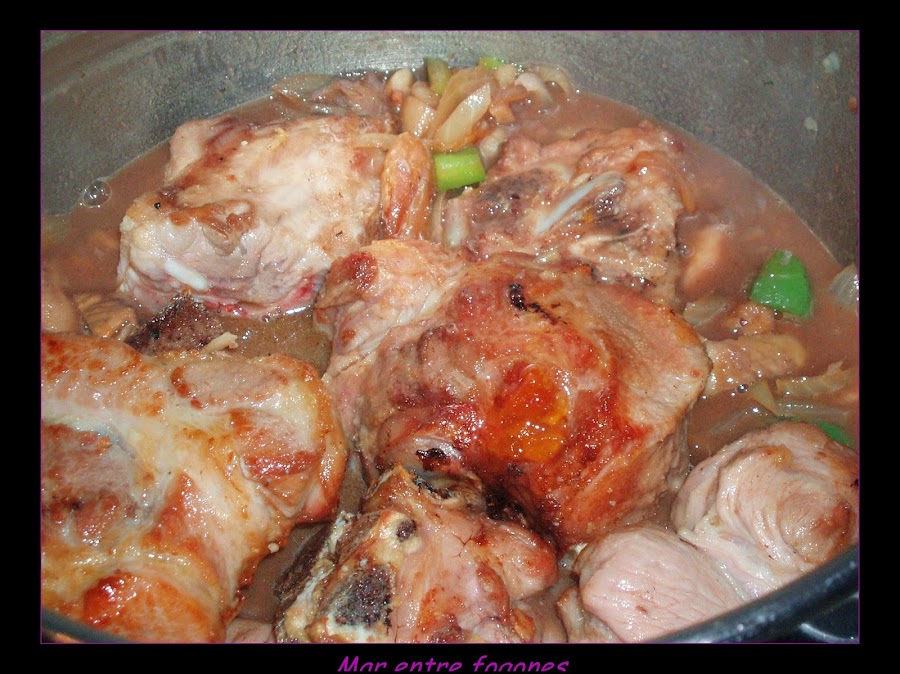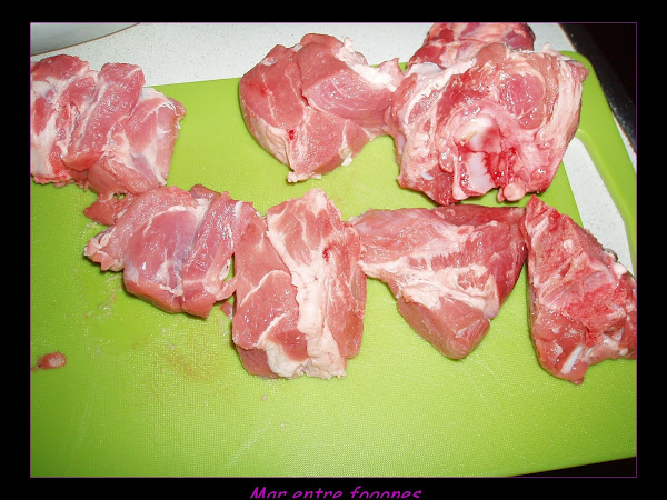 Pedimos al carnicero que nos parta unas tiras anchas de cabecera de cerdo, ( yo las pedi como de 4 dedos de anchas).