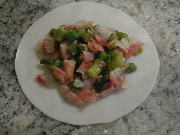 Pon dos cucharadas del relleno en cada una de las obleas.