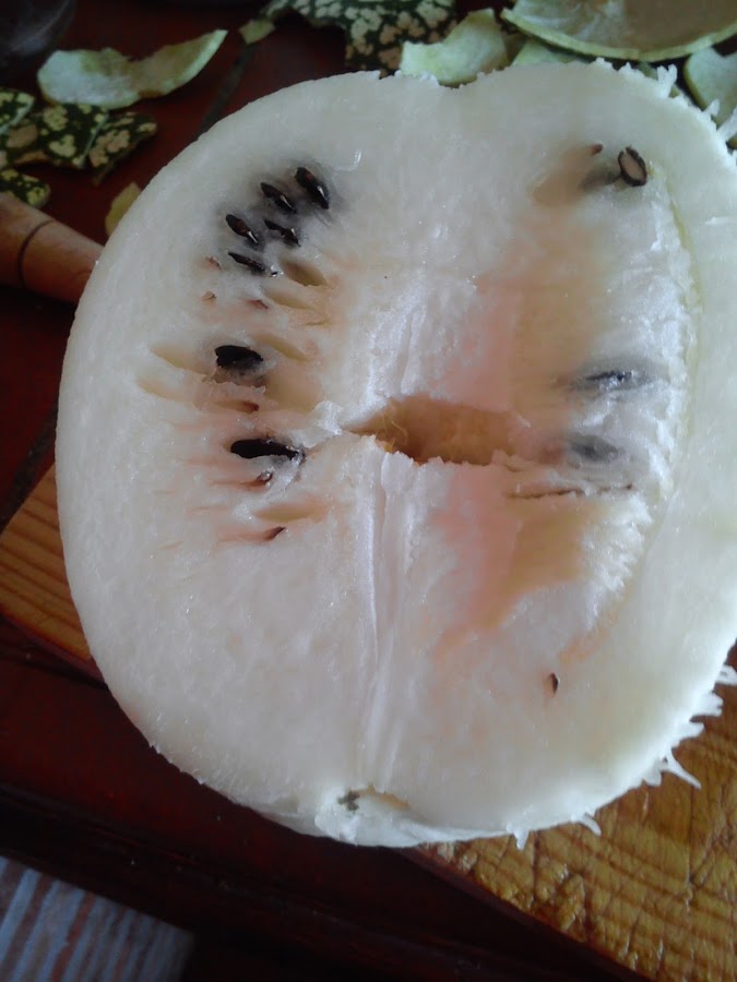 Hola a tod@s!! Hace ya tiempo que tenía esta receta guardada.No sé si sabéis, que el cabello de ángel se hace con una calabaza llamada Cidra. Es blanca y veteada por fuera, y blanca con pepitas negras por dentro. La primera vez que hice cabello de Ángel, me regaló la cidra una compañera y amiga, mi Ana. Luego, he estado buscando mucho tiempo la cidra, pero no había manera, no es fácil encontrarla en el mercado, por lo menos por aquí. Pero al final, en el Mercado Ecológico que se realiza aquí, en granada, por fín la encontré y me traje dos hermosas cidras a casa. Es un poco laborioso de hacer, pero se conserva muy bien durante mucho tiempo y podemos hacer ricos postres. Vamos con la receta.