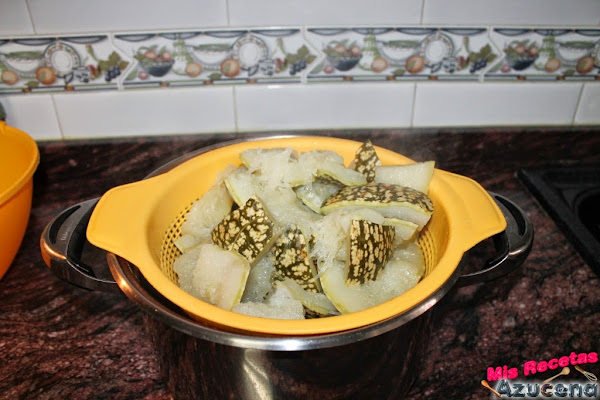 Una vez este tierna, retiraremos del fuego y pondremos a escurrir la calabaza, la dejaremos como una hora para que se escurra bien y se enfrié.