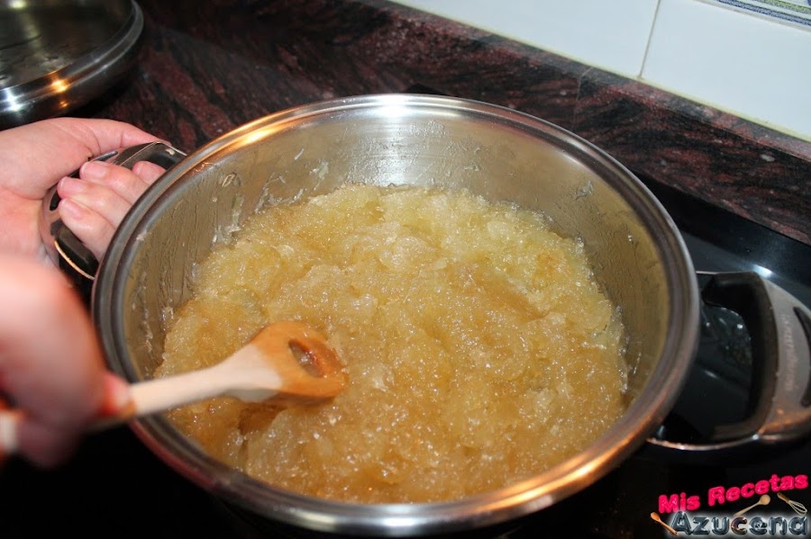 Para calcular el azúcar que tenemos que poner para hacer el cabello de Ángel es sencillo, yo peso la calabaza escurrida y lo que pese es lo que pongo de azúcar, esta me peso 600 gramos escurrida y puse 600 gramos de azúcar.