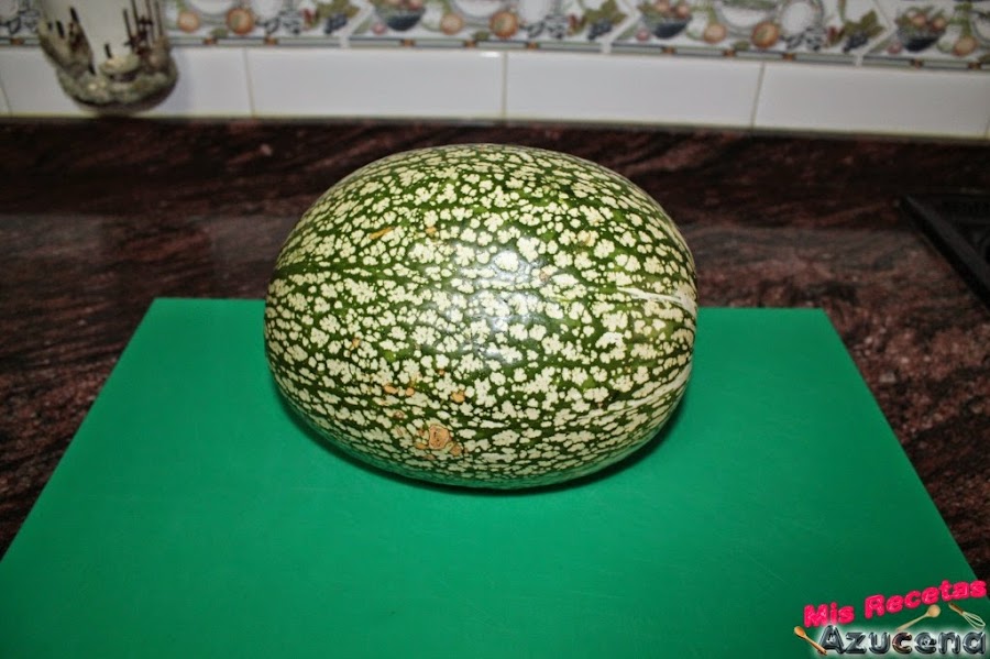 Lo primero que haremos será lavar bien con un estropajo la calabaza y enjuagarla bien pues la vamos a cocer con la piel.