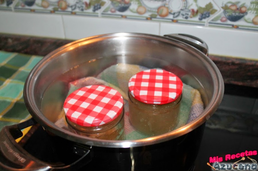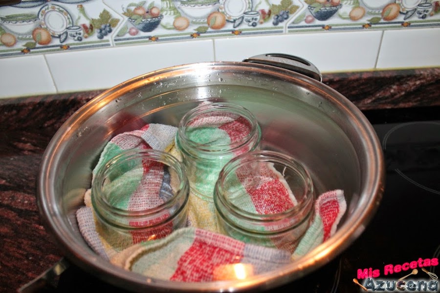 Ponemos los tarros en la olla donde los acabamos de hervir y los pondremos de pie para dejarlos 10 minutos, pasado este tiempo los sacamos le damos la vuelta y dejamos que se enfríen.