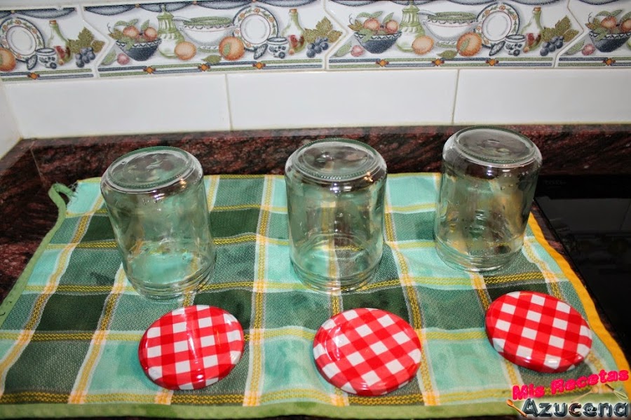 Para conservarlo lo envasaremos al vacío, ponemos una olla al fuego a fuego alto con un trapo de cocina en el fondo y ponemos los tarros que queremos esterilizar encima junto con las tapaderas, cubrimos con agua y dejamos que el agua hierva durante 10 minutos, pasado este tiempo sacamos y los colocamos boca abajo sobre un trapo para dejarlos que se sequen o los puedes sacar en el horno.