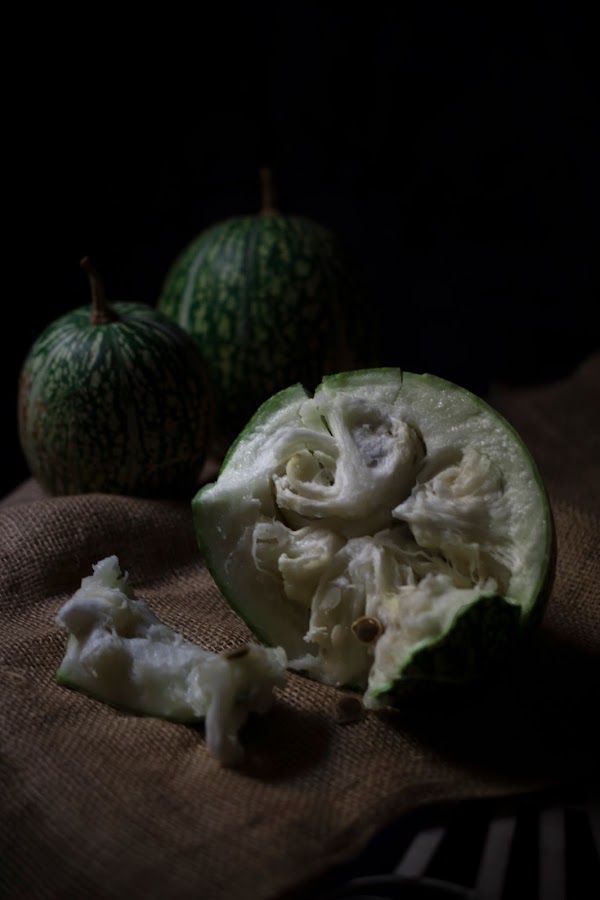 Seguro que muchos de vosotros os habéis preguntado cómo hacer un cabello de ángel en casa y no morir en el intento verdad? pues aquí vengo al rescate y aclararos todas las dudas posibles. Lo primero y más importante es la variedad de calabaza que tenéis que utilizar, no vale cualquiera, debe de ser esta variedad de la foto que es moteada y que por cierto no es fácil de encontrar fuera de las fronteras, os lo dice alguien que hasta ahora por cosas del destino la había encontrado en un par de granjas. Pero se me ha estropeado el chollo, por primera vez en 17 años me ha resultado imposible comprarla.