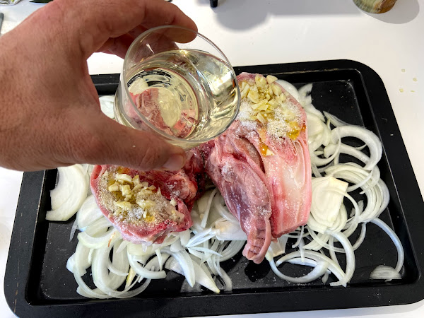 Se calienta el horno a 220º y lo dejamos asándose durante 1 hora aproximadamente, muy importante, NO se le da la vuelta.