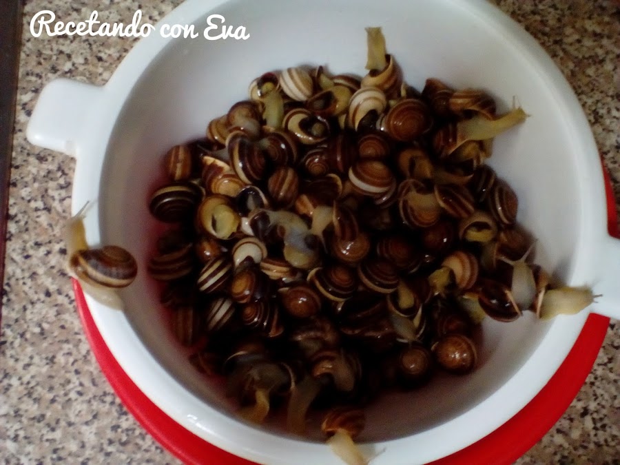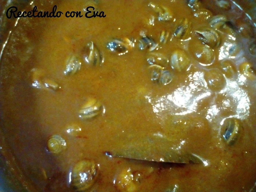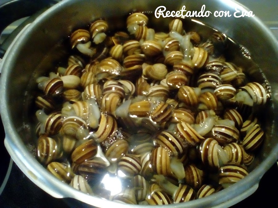 Subimos el fuego y cuando empiece a hervir, espumamos y agregamos sal y una cucharada de especies de caracoles molidas, dejándolo hervir una media hora.