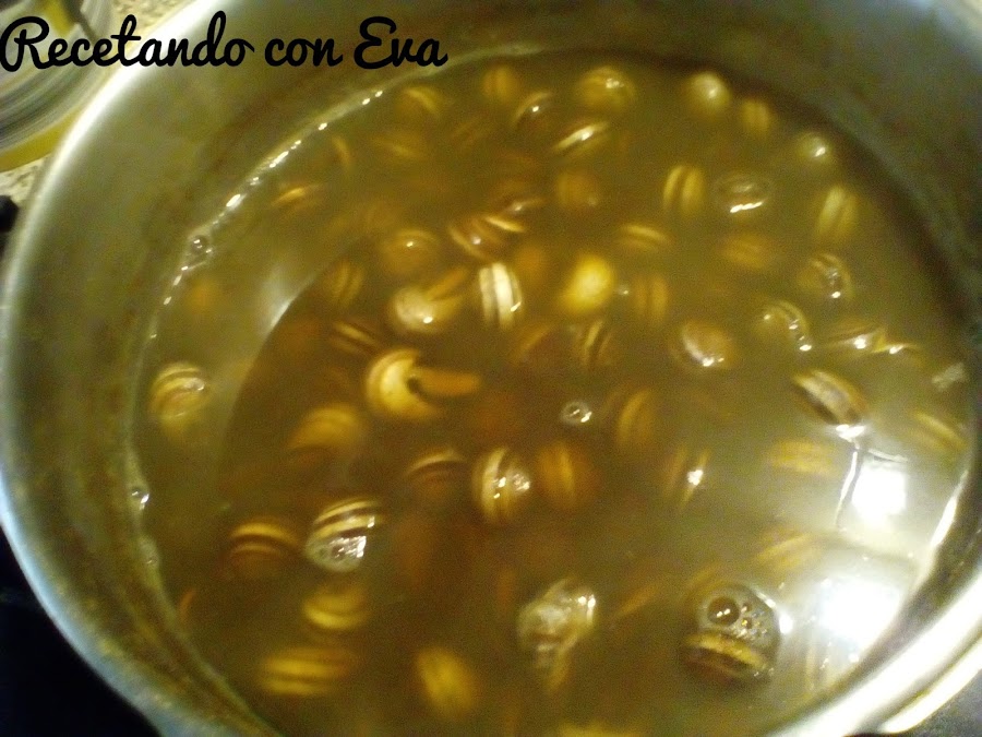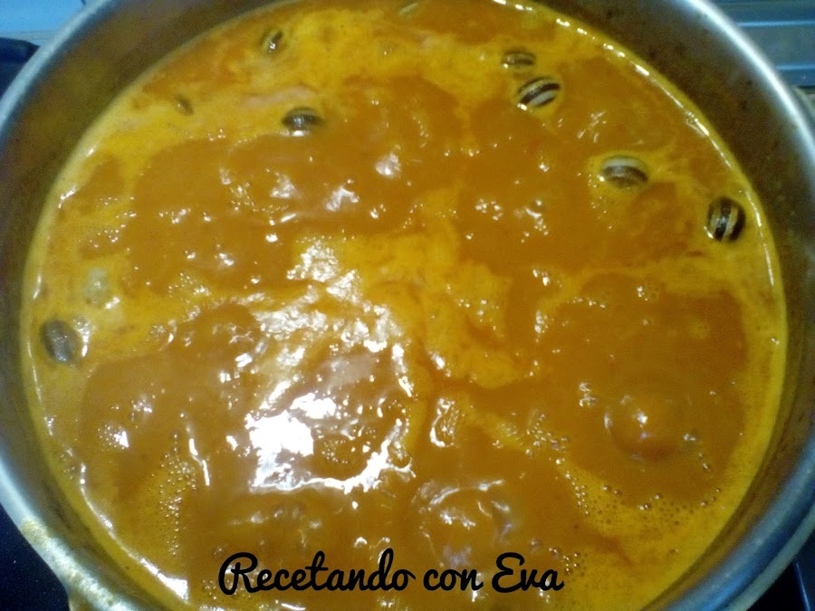 Agregamos a las cabrillas a las cuales habremos quitado algo de líquido y lo reservamos por si nos hace falta porque quede muy espeso y dejamos hervir otra media hora.