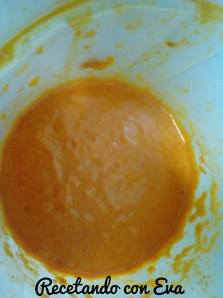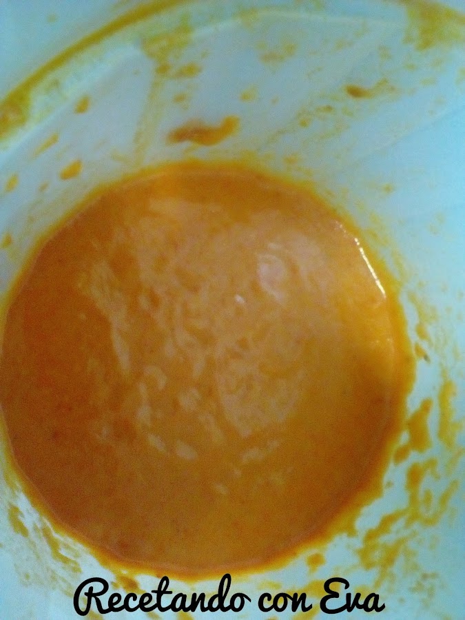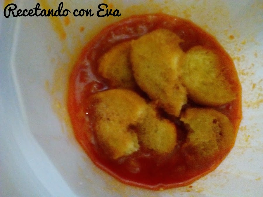 Quitamos la guindilla y batimos el sofrito junto al pan frito.