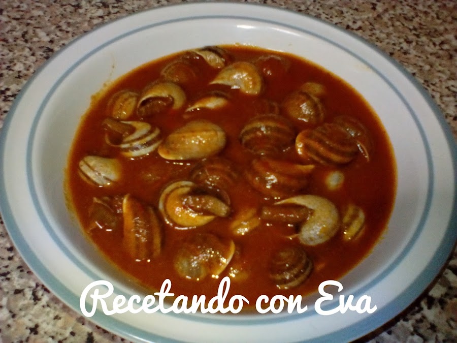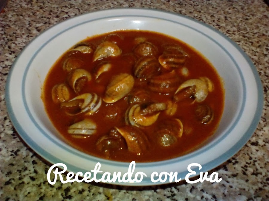 En el mismo aceite hacemos un sofrito con la cebolla, los ajos, la guindilla, el pimiento los tomates pelados y las ñoras, que previamente hemos tenido en agua caliente para que se hidraten), cuando esté el sofrito echamos sal, la otra cucharada de especies de caracoles, el pimentón, el cual removemos bien para que no se queme, y el vaso de vino. Dejamos unos minutos y retiramos del fuego.