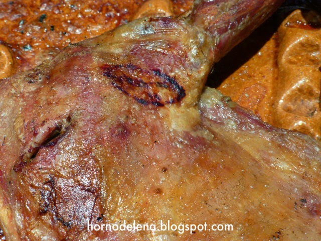 Salamos la pieza de cabrito y añadimos un poco de aceite de oliva por encima, lo colocamos con la piel abajo en la fuente o rejilla, según el caso.