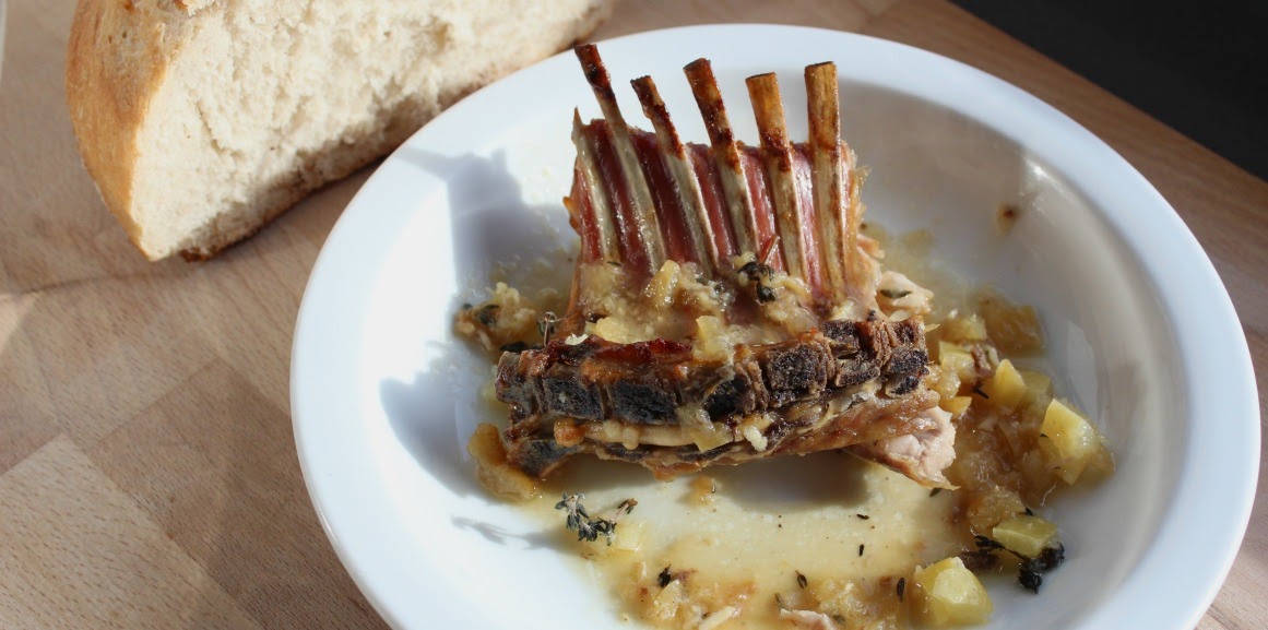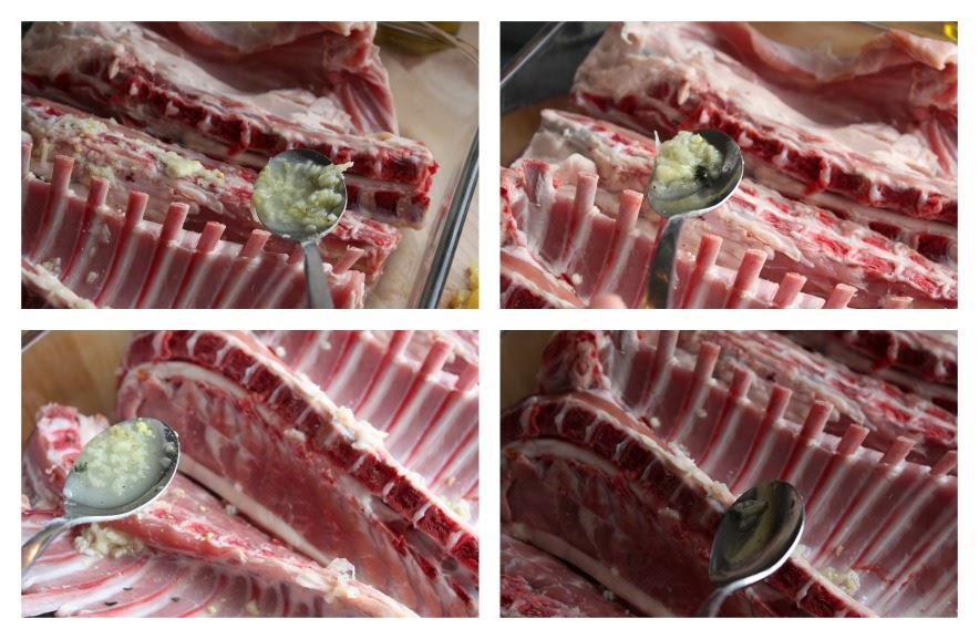 Puedes "hermosear" el carre de cabrito y atar la carne, si lo deseas.