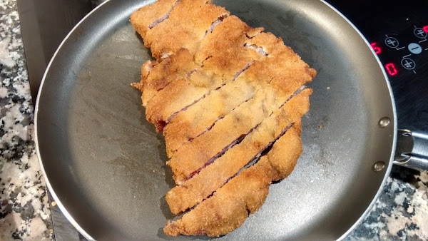 Empanamos el filete como cualquier filete empanado, pan rallado, huevo y otra vez pan rallado.