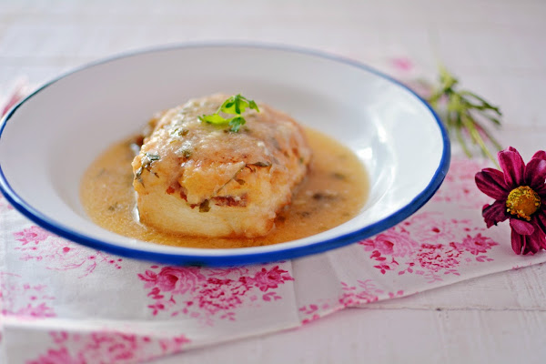 Añadimos los cachopos de merluza que teníamos reservados en la salsita y dejamos cocinar unos 15 minutitos.