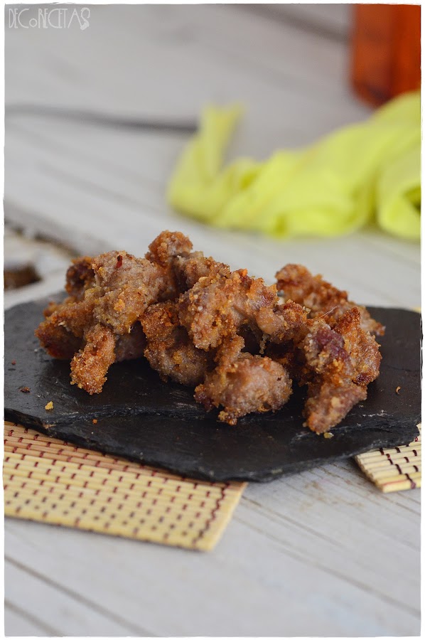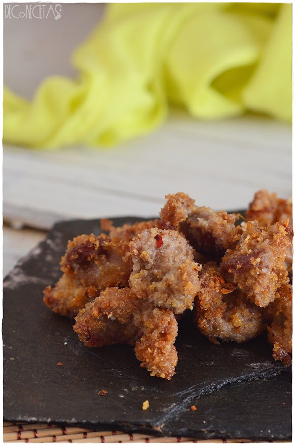 Las cachuelas, las compré limpias en el supermercado, y lo único que hice, fue cortarlas en trozos pequeños, y las rebocé en pan rallado con ajo picado y perejil. Las freímos en aceite caliente, a fuego bajo, dejándolas como unos 5 minutos y depositándolas en papel absorvente a continuación. Por último, añadimos sal al gusto por encima y listas!!