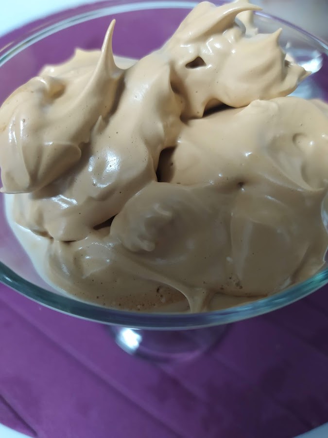 Consiste en una espuma de café soluble y azúcar, sobre un poco de leche o bebida vegetal.
