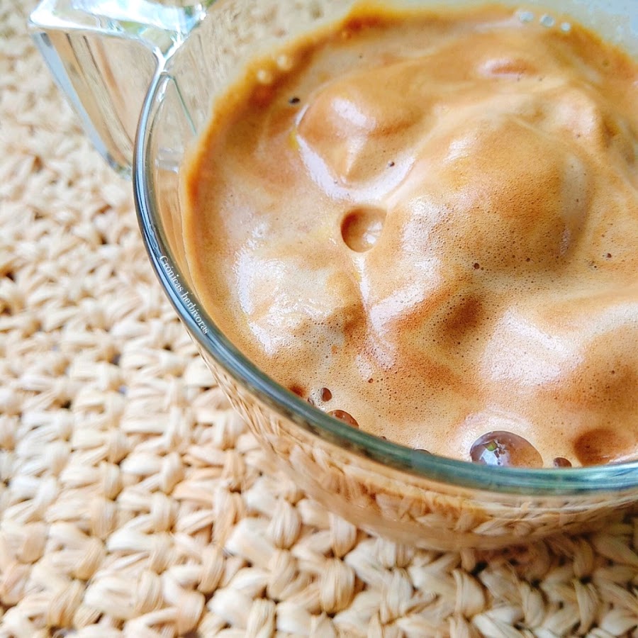 Como tenía todos los ingredientes y por Sevilla ya empieza a hacer un tiempo primaveral, me puse a hacer el café Dalgona sin mucha esperanza de que me saliera a la primera, pero para mi sorpresa es super fácil. No hay ningún truco pero si no quieres dislocarte la muñeca te recomiendo unas varillas eléctricas. Una simple vale, no necesitas ningún costoso procesador.