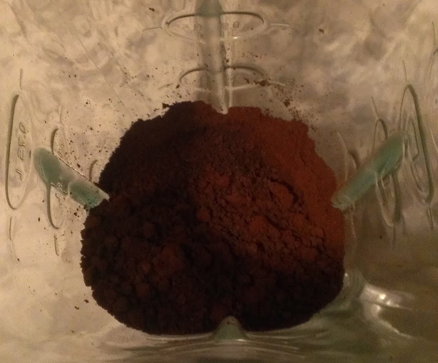 Una vez procesado se verá así, dependiendo de la potencia de la licuadora puede requerir varios procesos, de intervalos cortos hasta lograr pulverizar los granos tostados.