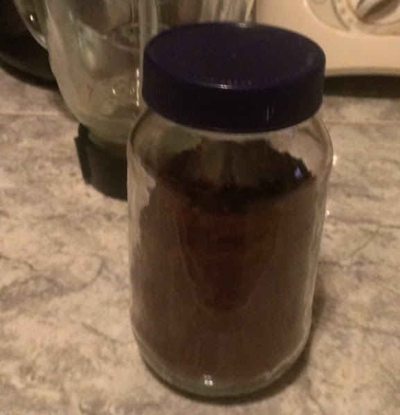 La dejamos enfriar y procesamos, si usted es de los afortunados que cuenta con un molinillo para café, adelante, sino, haga como yo y utilice la licuadora