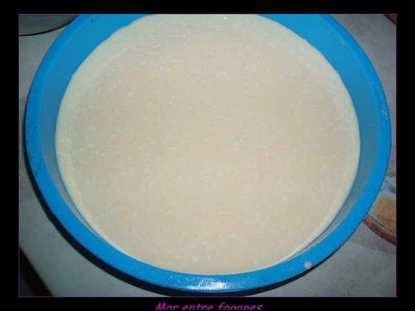 Esta receta se la copie a Toñi del blog ¿Qué se cuece en la cocina?, le he quitado un poco de azúcar, ya sabéis que no nos gustan los postres muy dulces, y le he añadido queso. Ella la ha preparado con higos (lo probaré en cuanto llegue la temporada), asi que supongo que cualquier fruta de esta temporada de verano nos puede servir y quedar super rica.