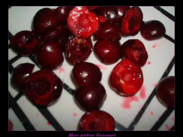 Partimos las cerezas a la mitad, les quitamos el hueso.