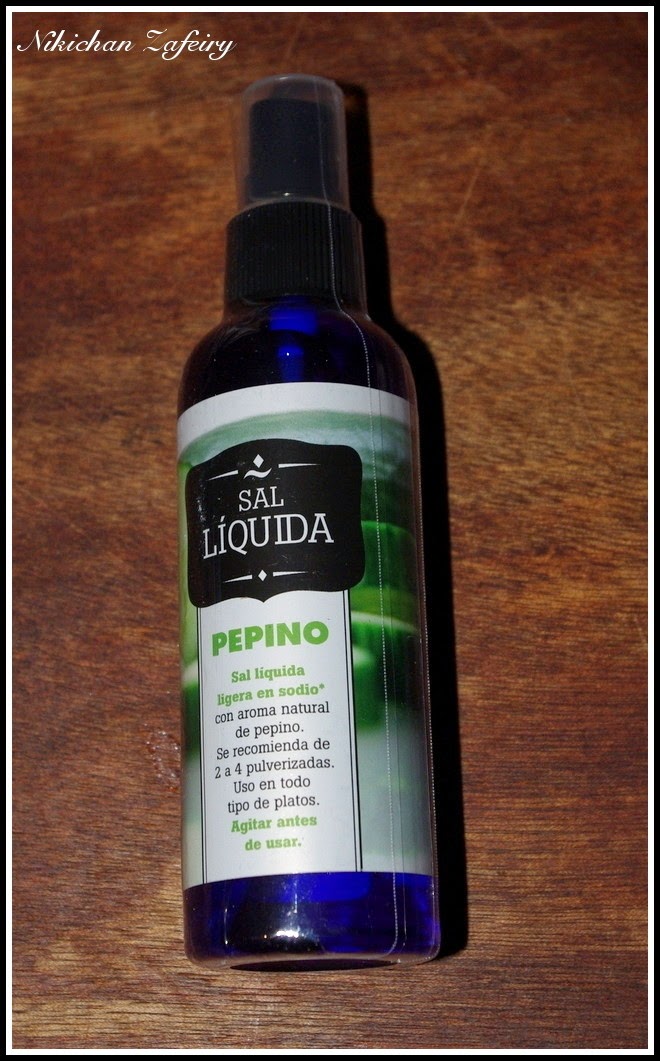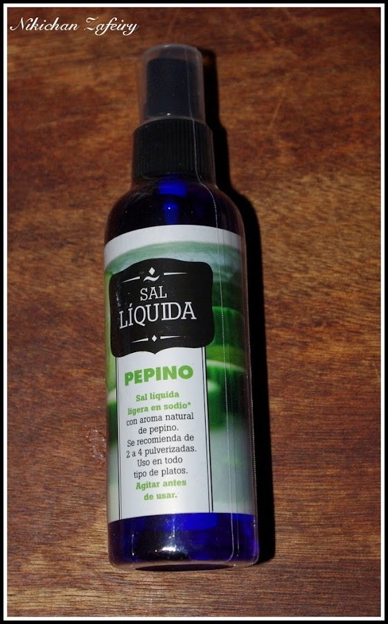 Sal líquida de manantial ligera en sodio, con extracto natural de pepino. Vale para todo tipo de platos y solo hay que agitar antes de usar. A mí me encanta para las ensaladas sobre todo.
