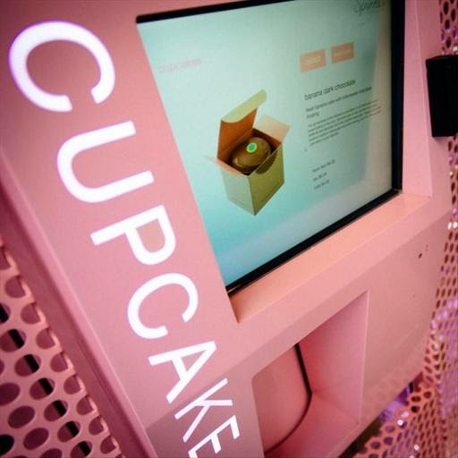 No me negarás que la idea no es original, pero claro, no la ha puesto en práctica un emprendedor cualquiera sino alguien con recursos. Veremos si dentro de no mucho algún compatriota se decide a seguirla y tenemos en España "cajeros automáticos" expendedores de pasteles, croissants o similares, de momento si de noche tienes un antojo lo más parecido que te puedes encontrar es un expendedor de preservativos, aunque si los hay de sabores todavía quizás tienes alguna posibilidad de satisfacerlo. Eso sí, si alguien se anima, la calidad del pastel de turno no sé cuál será, pero seguro que podremos solicitarlo en catalán, euskera, gallego o castellano, elegir si queremos o no recibo de la operación, y cuando haya una huelga general si tienes un antojo te llevarás el disgusto de que lo habrán sellado con silicona, eso sin contar con que Montoro si la cosa funciona le subirá el IVA del tipo reducido al 21%.....total....que piénsate bien si merece la pena. ¿Alguien se anima?.