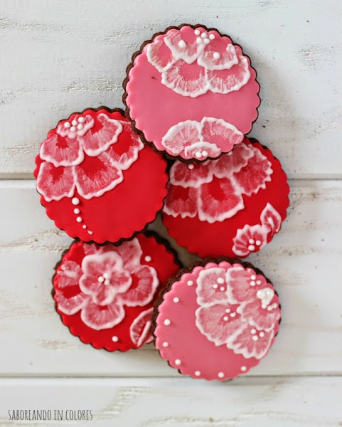 6º- Una vez que has terminado un pétalo, continua con el siguiente. La glasa se seca muy rápido, así es que no dibujes el contorno de todos los pétalos a la vez, sino hazlos uno a uno.