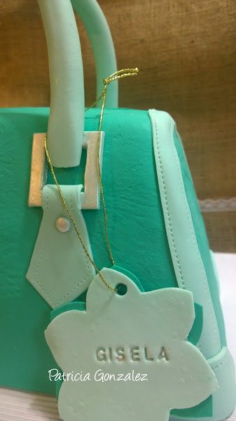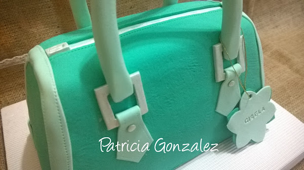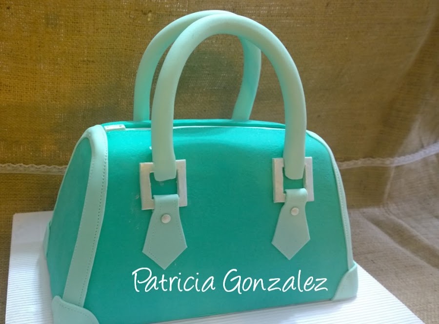 Torta Cartera: forrada con pasta de fondant, los detalles de las manijas y apliques están hechos, con pasta de modelar, bizcochuelos de vainilla, estirados en placas de 30 cm x 40 cm x 2 cm alto, por cada placa salen tres bizcochuelos estirados, de 13 cm x 30 cm, en total de lo empleado en esta torta fueron 3 placas, haciendo un total de 9 bizcochuelos estirados, los rellenos que utilizamos, fueron dulce de leche y ganache de chocolate y crema de manteca....