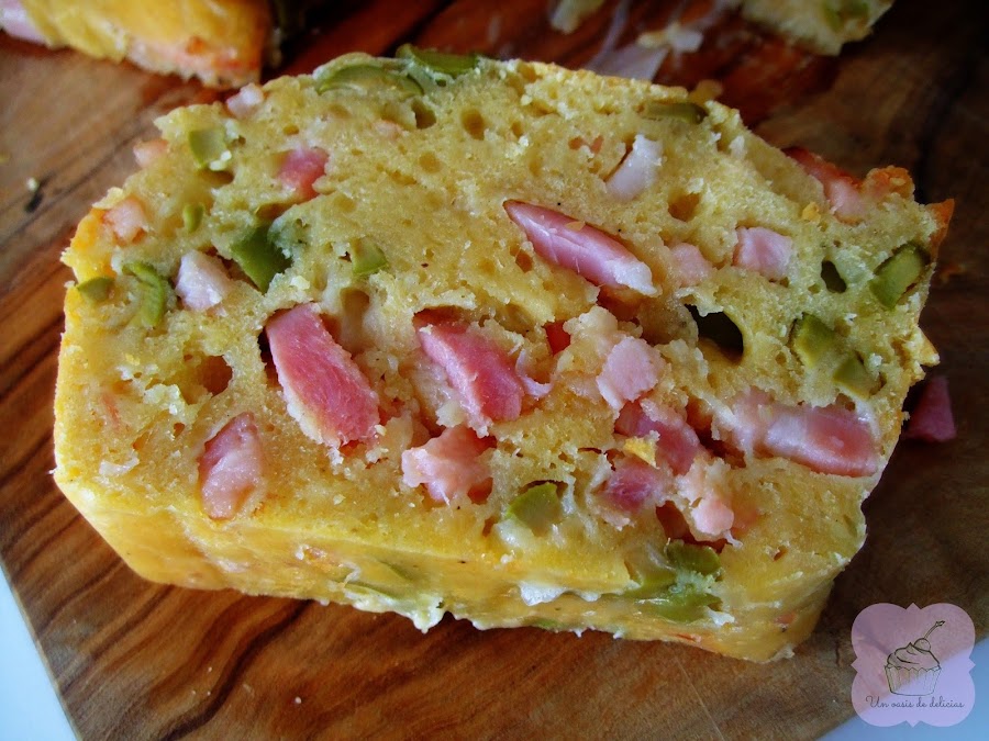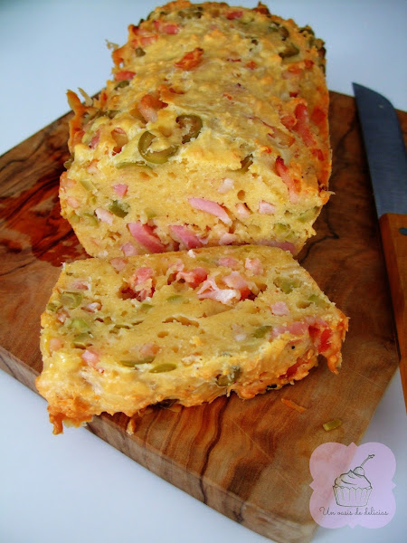 5º Cortamos en láminas las aceitunas y las añadimos a la masa, junto con las tiras de bacon y el emmental rallado.