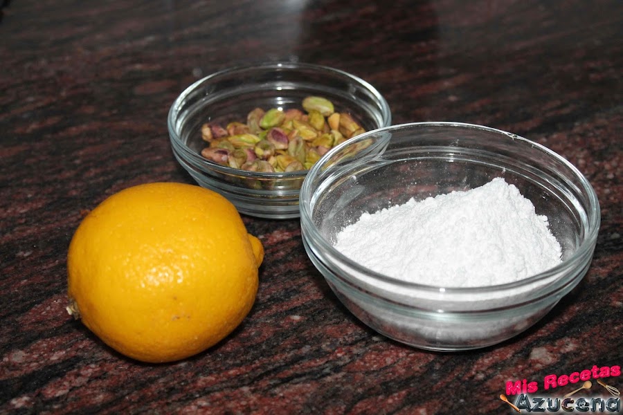 Cogemos los pistachos los pelaremos y los picaremos hasta forma especie de una harina, reservamos.