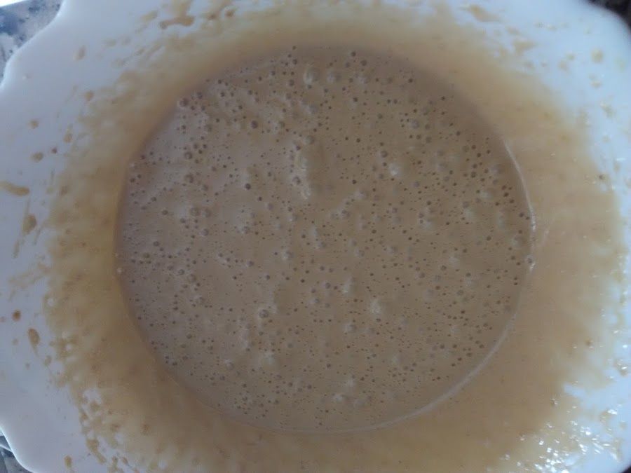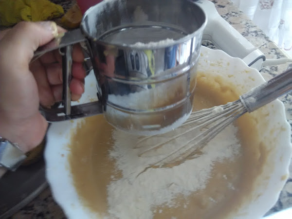 Añadir la harina tamizada poco a poco e ir batiendo con varillas manunales.