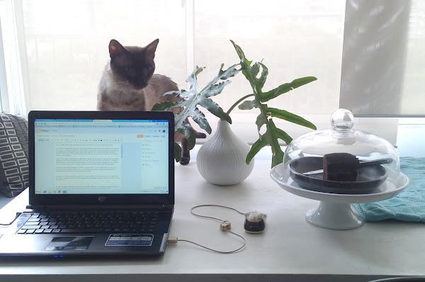 Ese es el borrador de este post, al lado, el cake que estoy explicando y al fondo, "el supervisor" fregando la paciencia