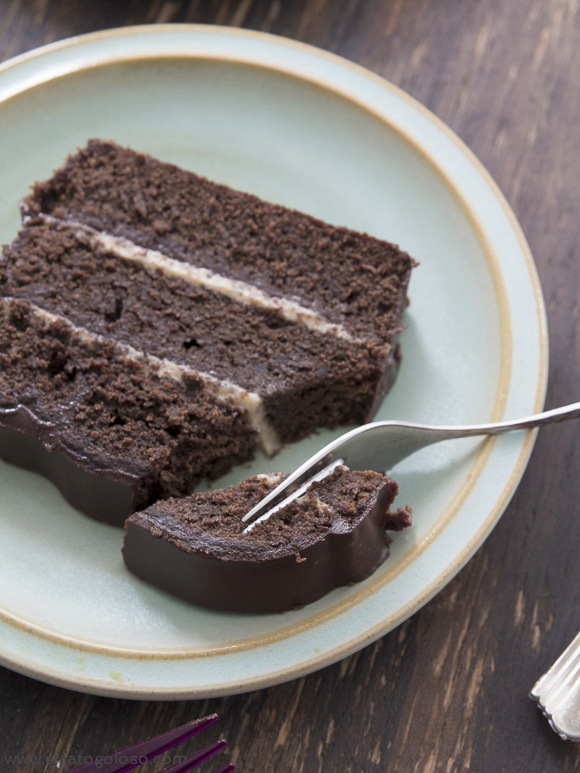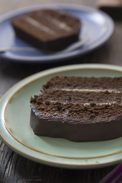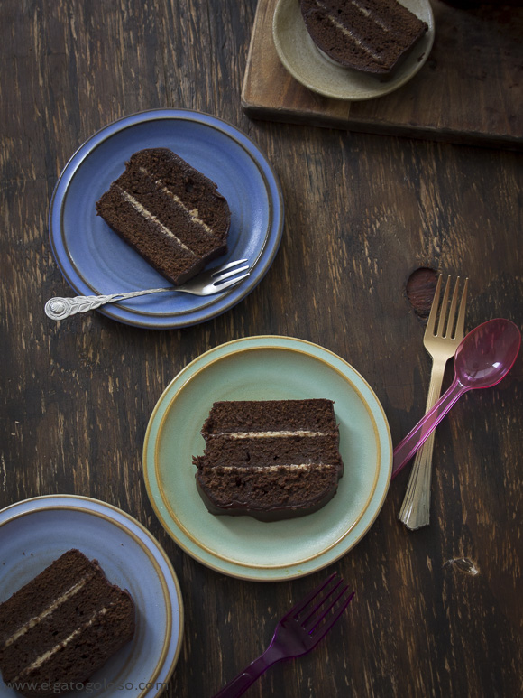 Aquí dejo la receta, los animo a que intenten hacerla porque no se parece a nada que haya comido recientemente en ninguna pastelería local. Eso sí, es para gente grande amante del chocolate amargo, aunque se puede cambiar fácilmente para complacer a los niños de la casa.Cake de chocolate