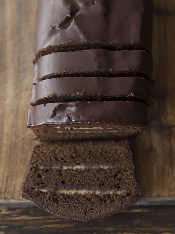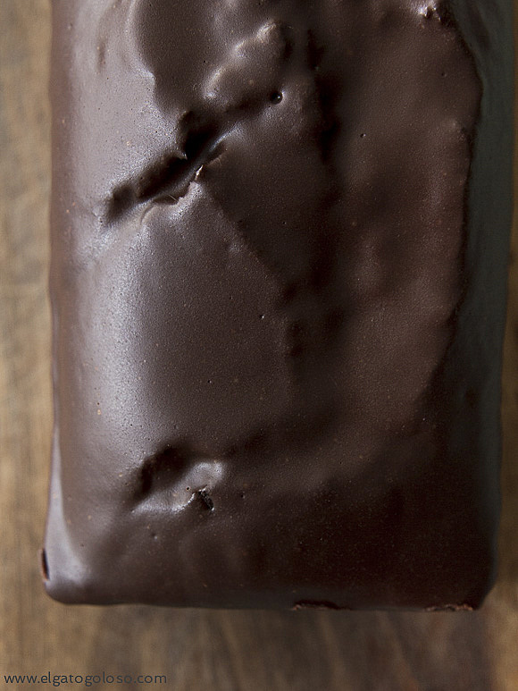 El ganache exterior lo he preparado con chocolate amargo y leche evaporada, pero igual puede utilizarse chocolate con leche y crema de leche si se tiene disponible.